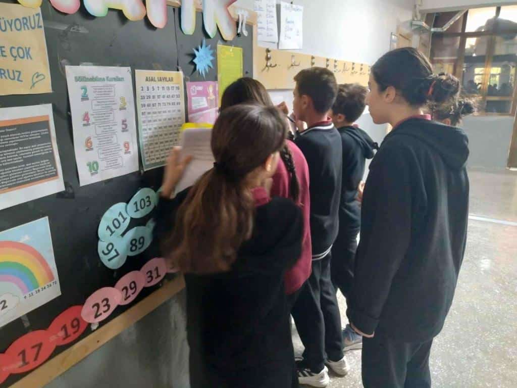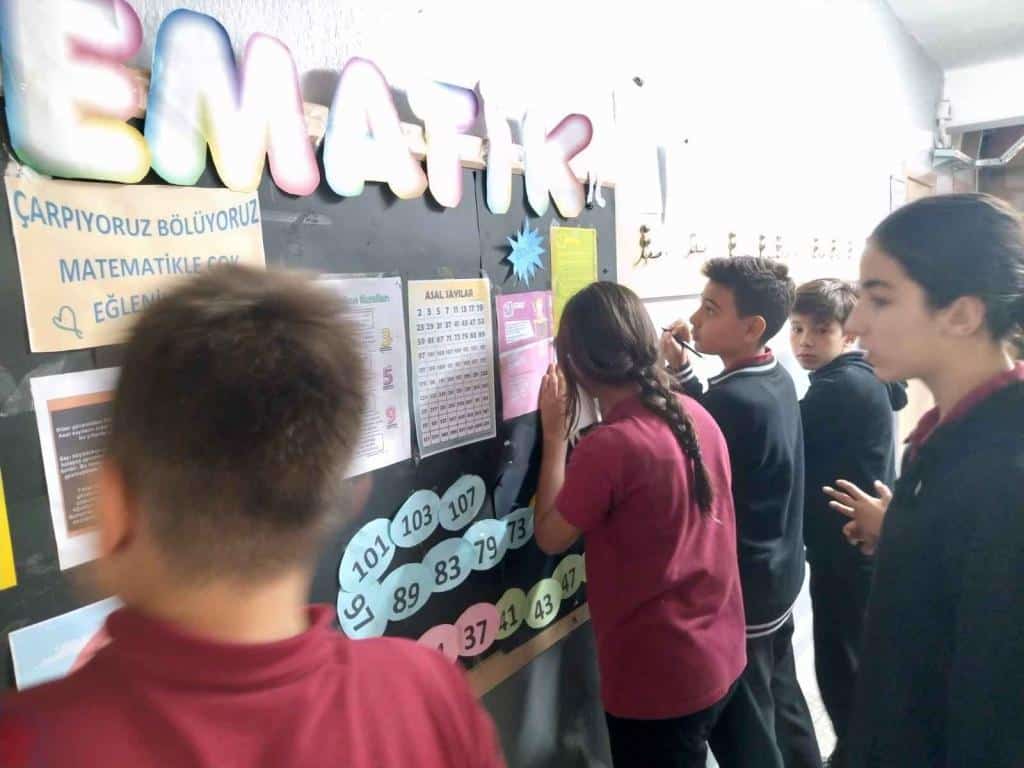 Okulumuzda matematik panosunun önündeki beyin fırtınası, keyifli vakit geçirme, akran öğrenme etkinliklerimiz devam ediyor. Emeği geçen öğretmenimize teşekkür ederiz.